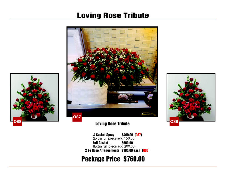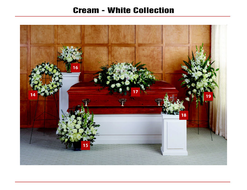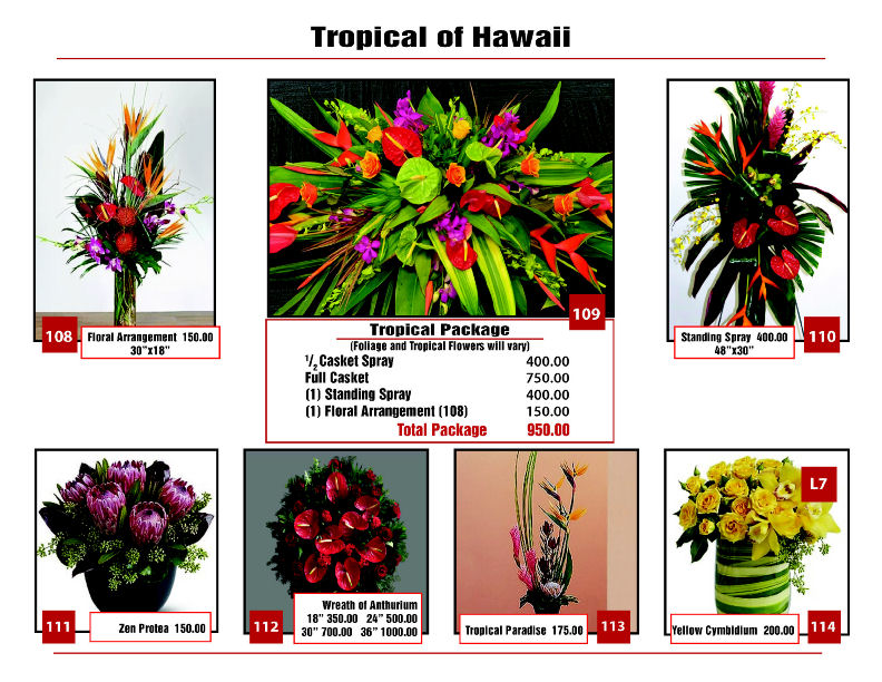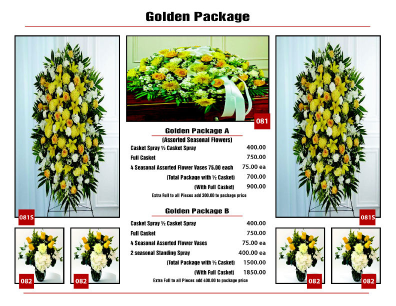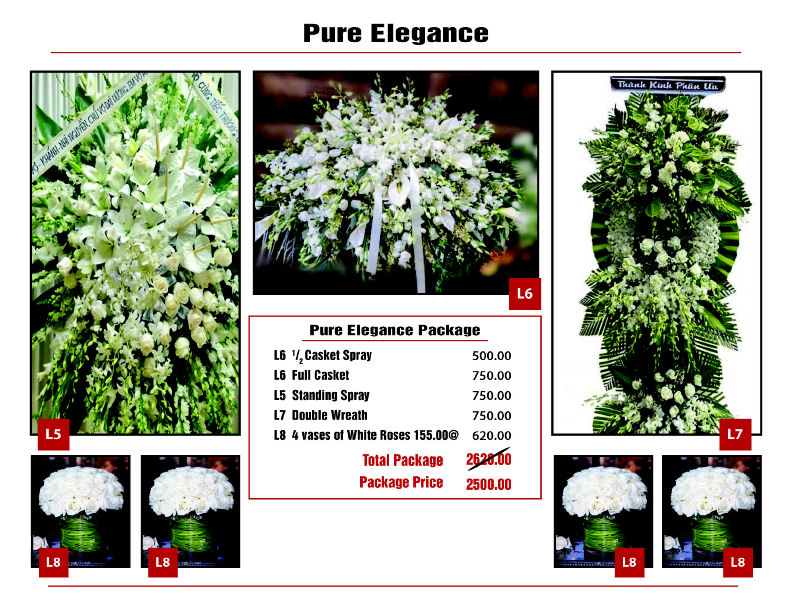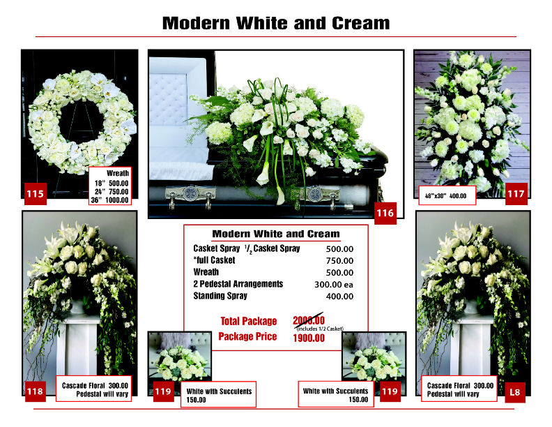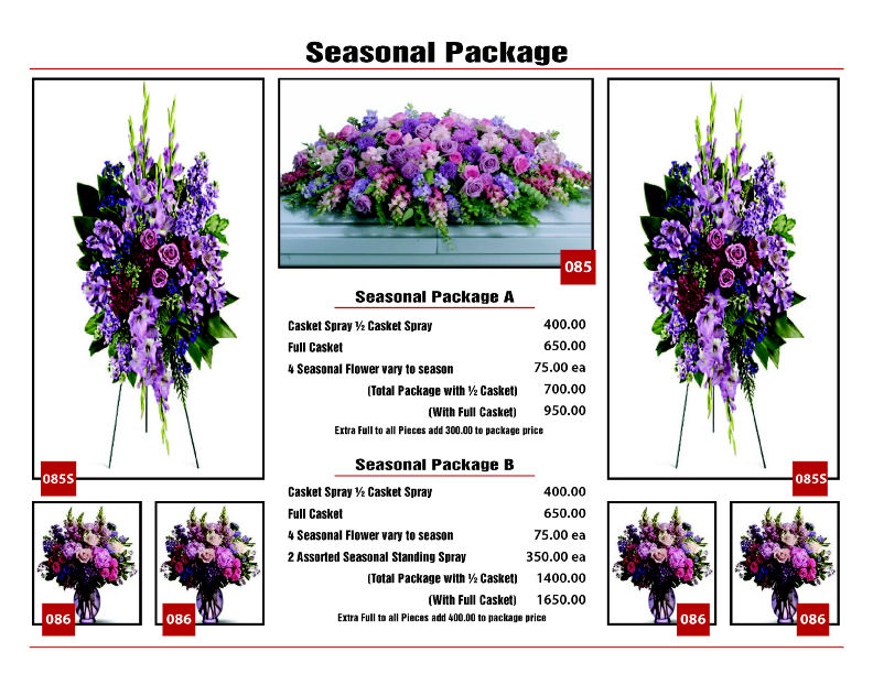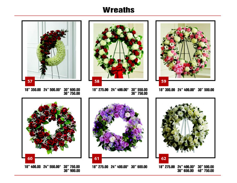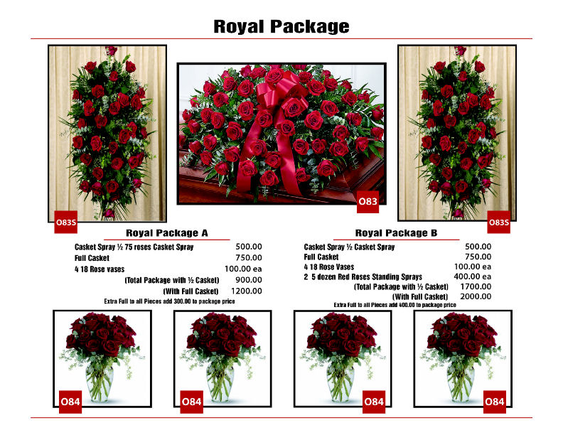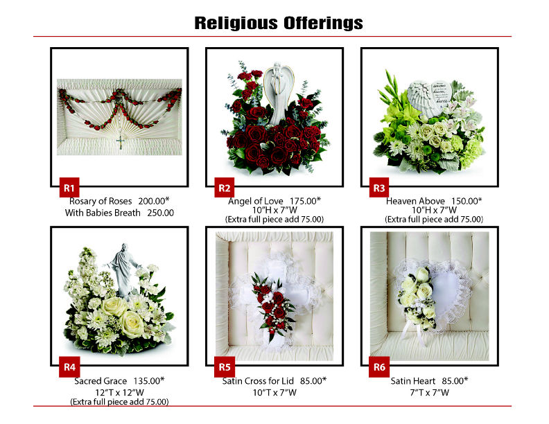 You may choose from the following flower arrangements. Prices are marked next to each arrangement or on the following page.
