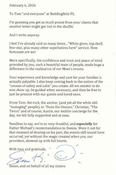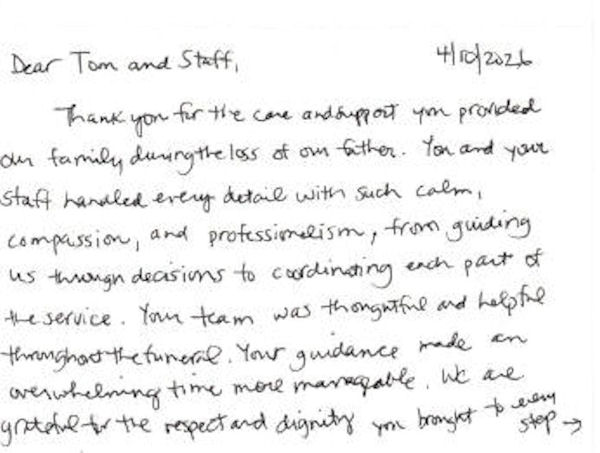 These are some of the cards and letters we have received from families we have served. Thank you! We appreciate your thoughtfulness.